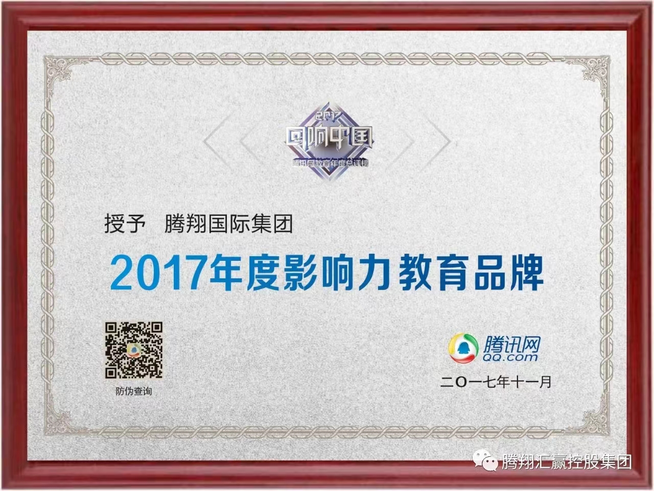 管鹏:年回响声音授予腾翔国际集团2017年度影响力教育品牌