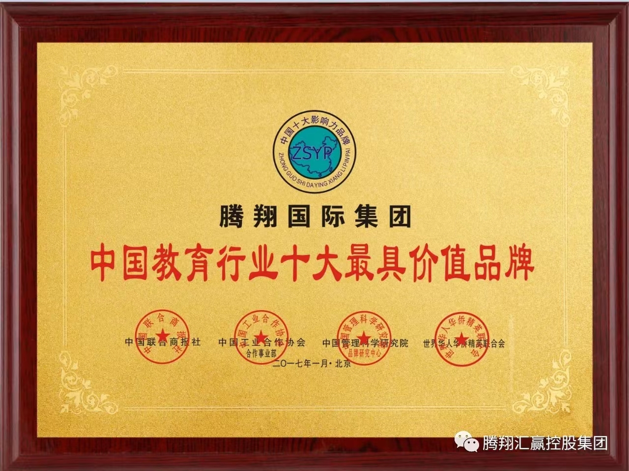 管鹏:中国联合商报社,中国工业合作协会等授予腾翔国际集团中国教育行业十大最具商业价值品牌