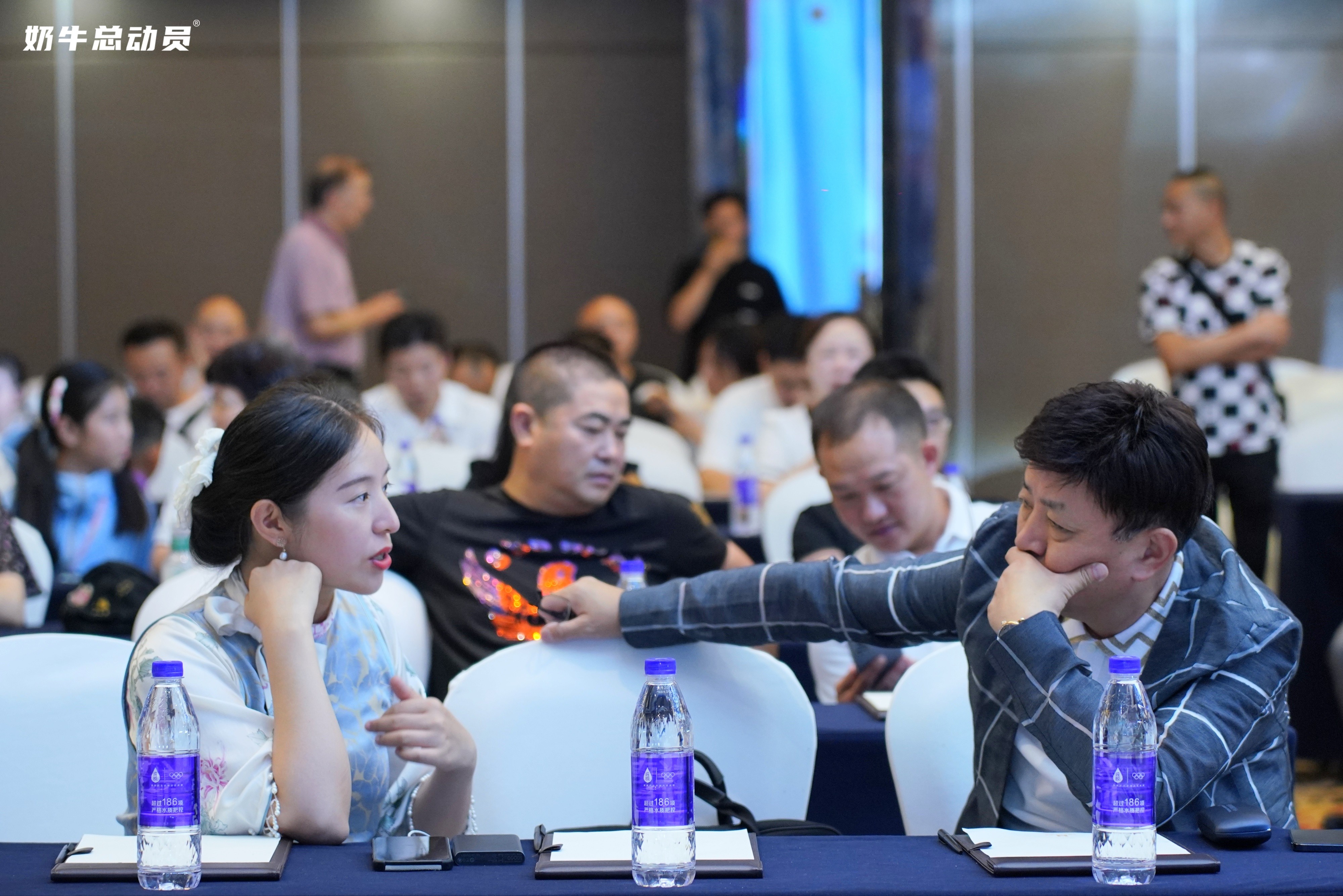 吕丽琴: 《奶牛总动员品牌发布会》台下观众和旁边的人交谈