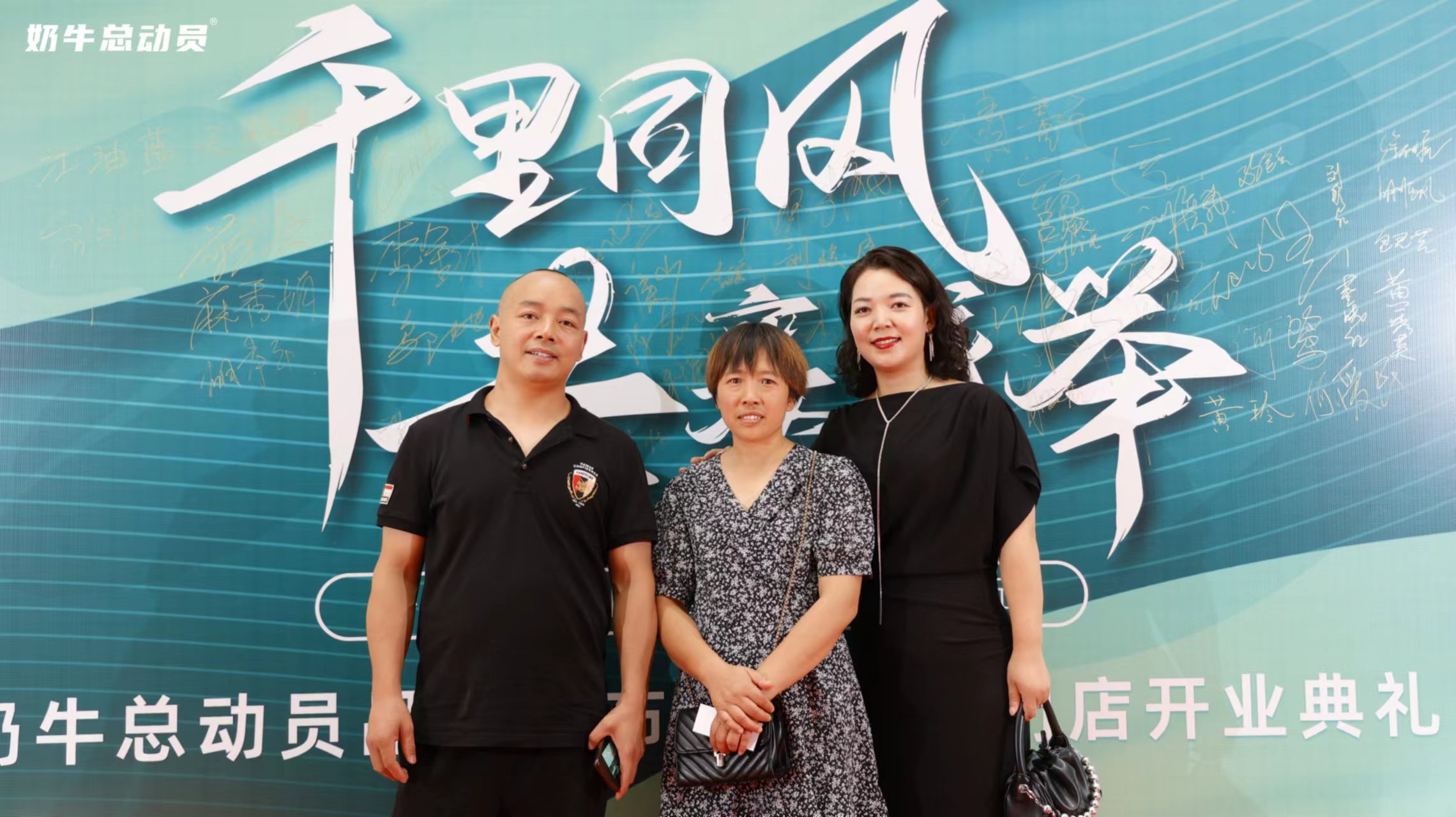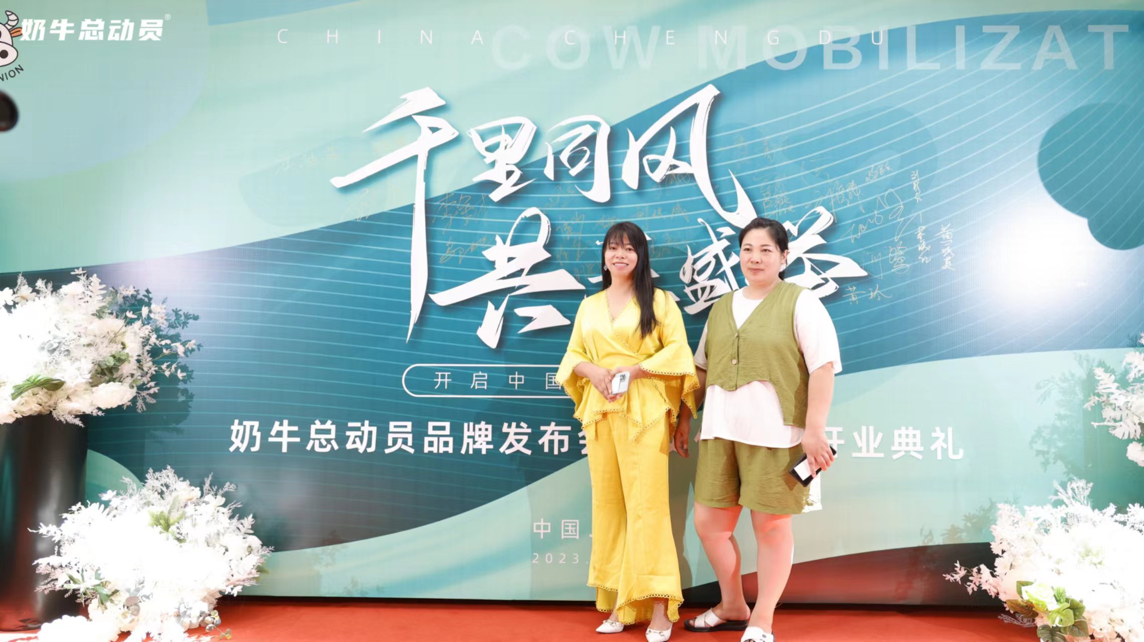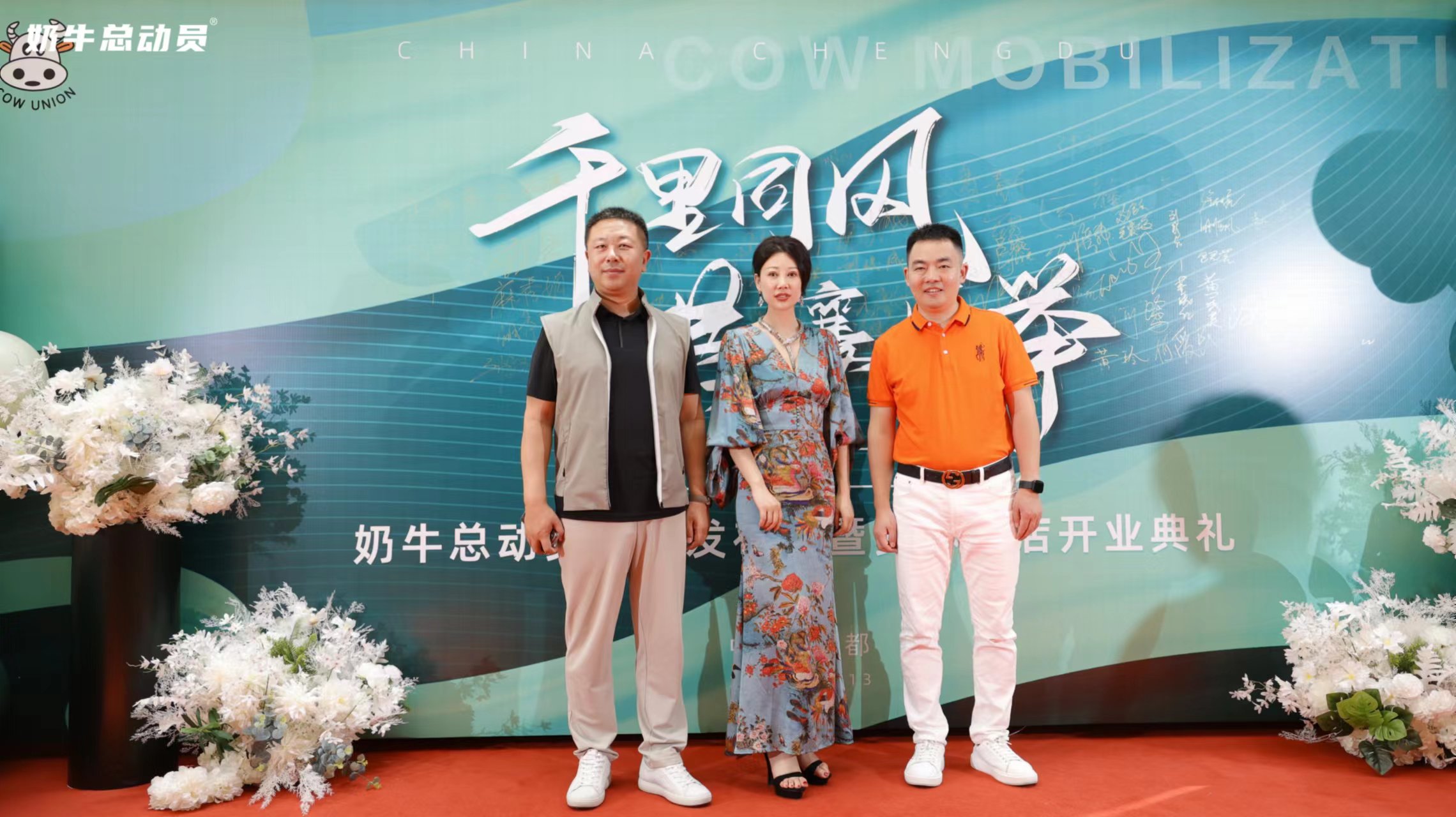 吕丽琴: 《奶牛总动员品牌发布会暨实体门店开业典礼》上,到场嘉宾在典礼上拍照留念