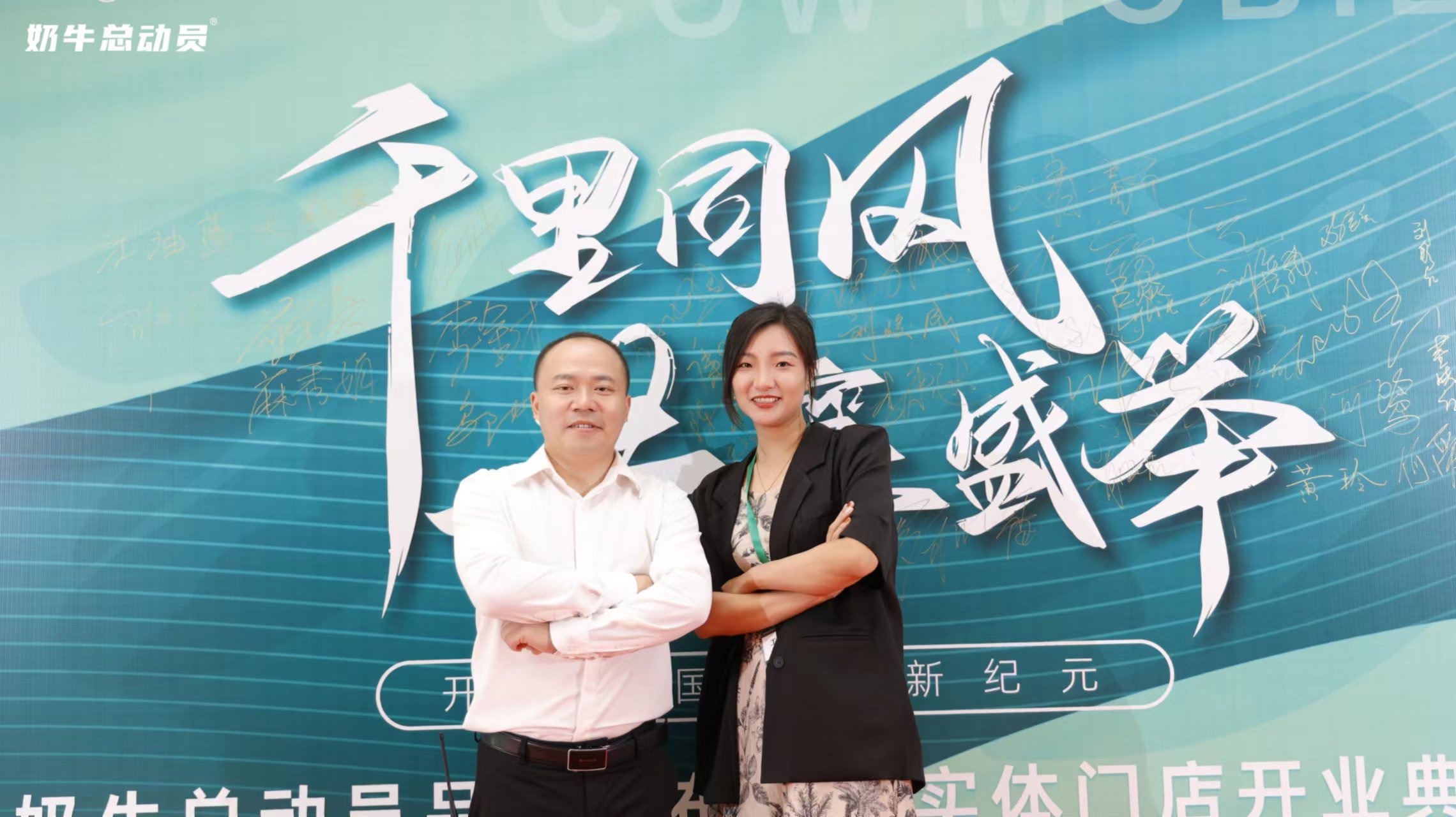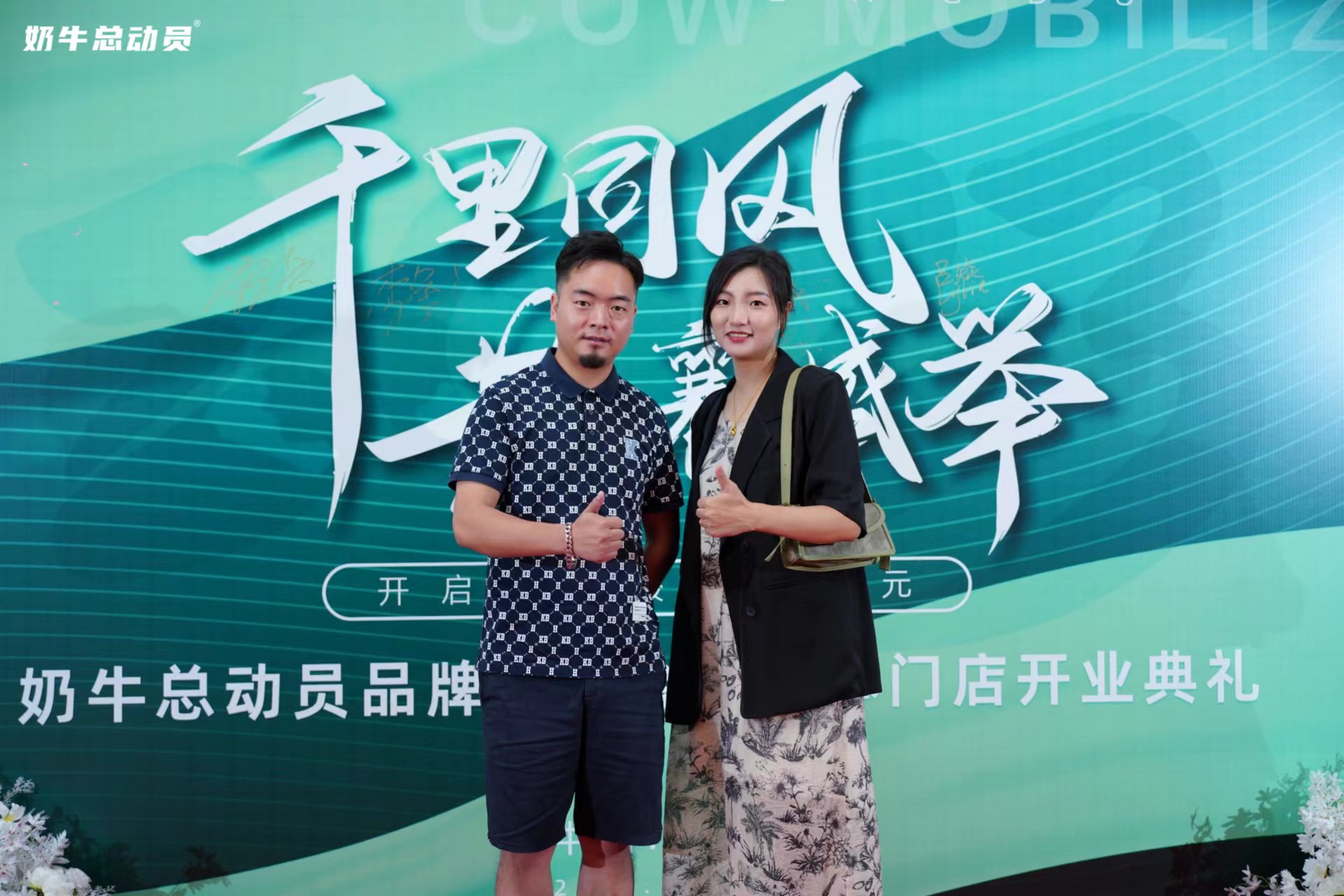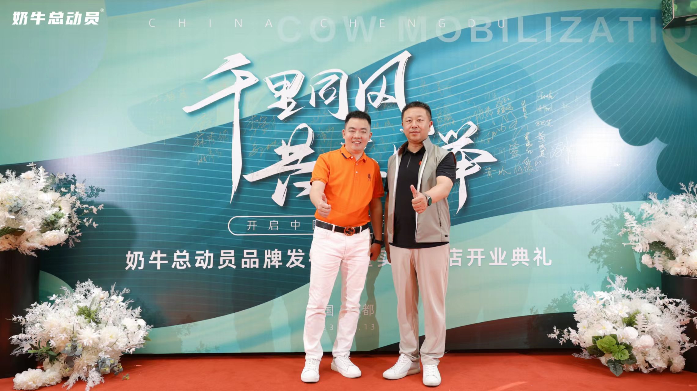 吕丽琴: 《奶牛总动员品牌发布会暨实体门店开业典礼》上,到场嘉宾在典礼上拍照留念