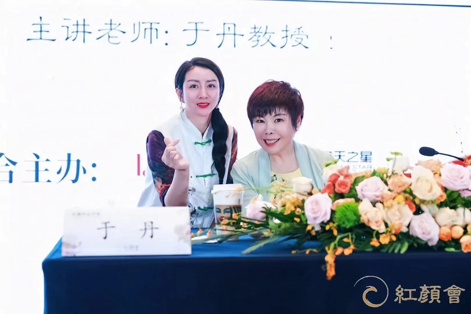 管鹏:刘美然老师在《红颜会》中和主讲老师于丹教授合影留念