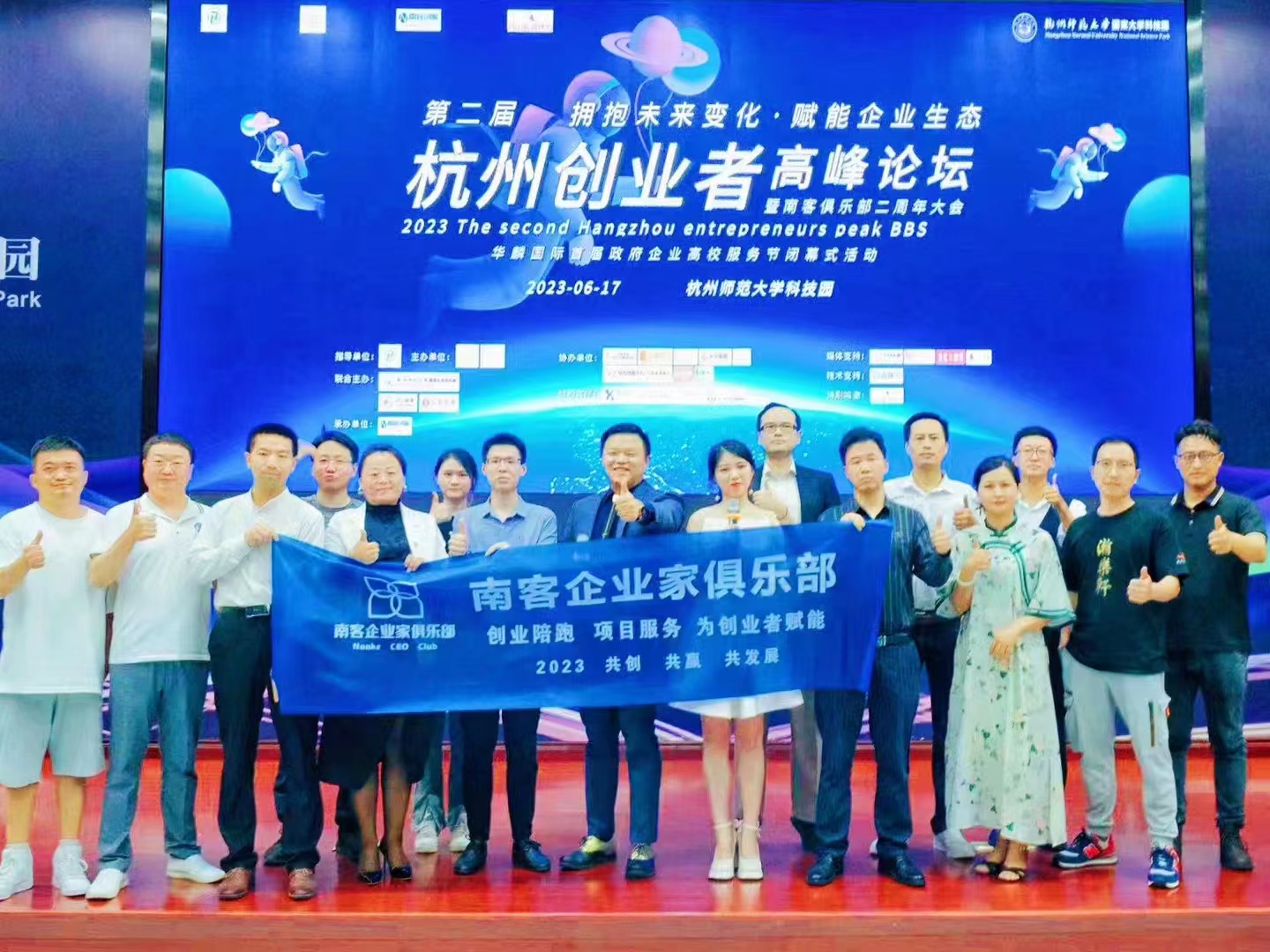 管鹏:《第二届杭州创业者高峰论坛暨南客俱乐部二周年大会》上,南客企业家俱乐部全体合影留念