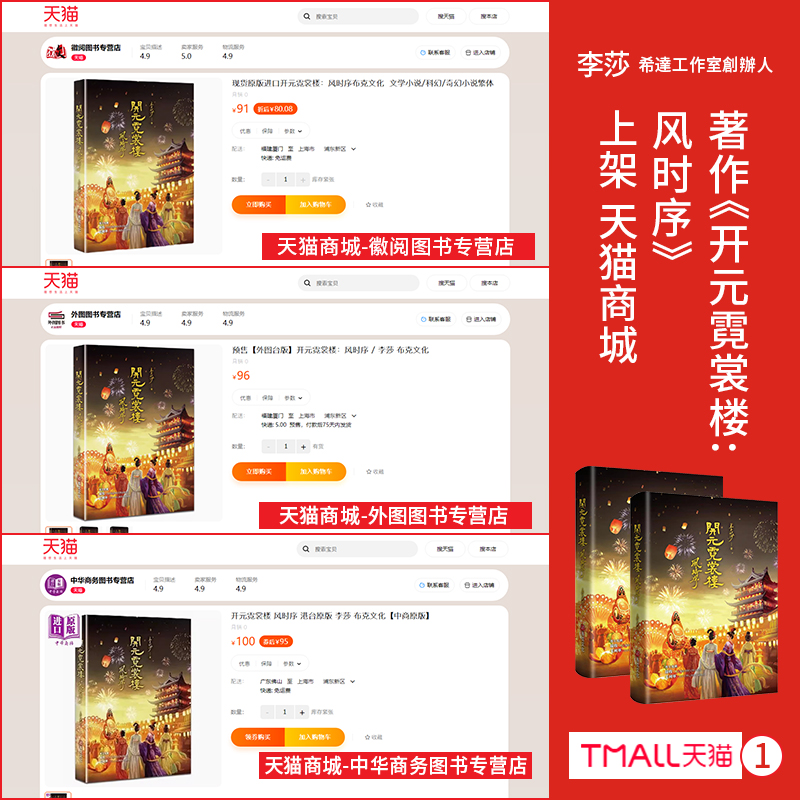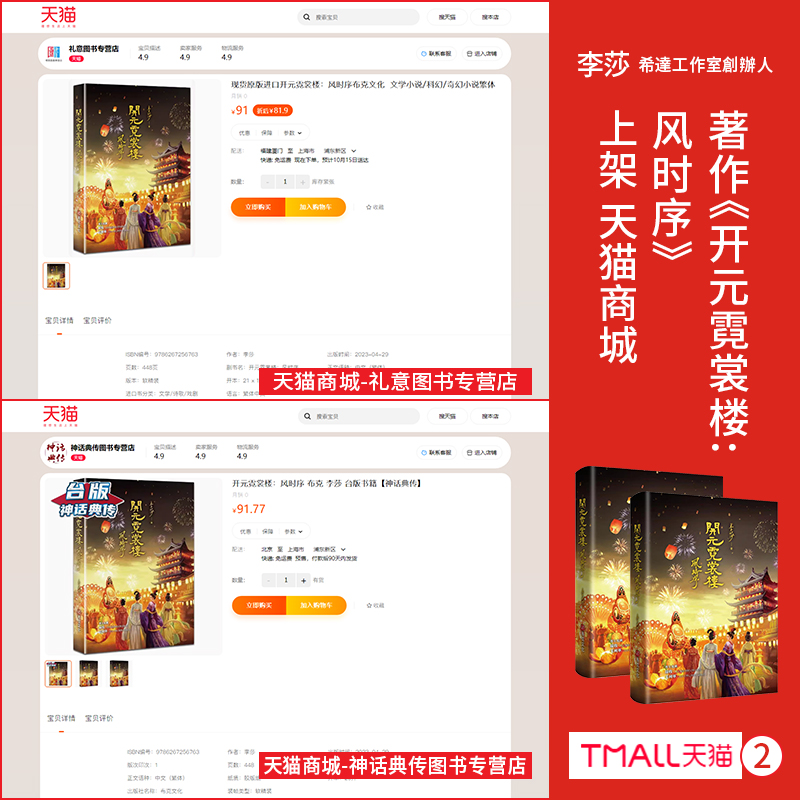 李莎:著作《开元霓裳楼:风时序》上架天猫商城——礼意图书专营店和神话典传图书专营店
