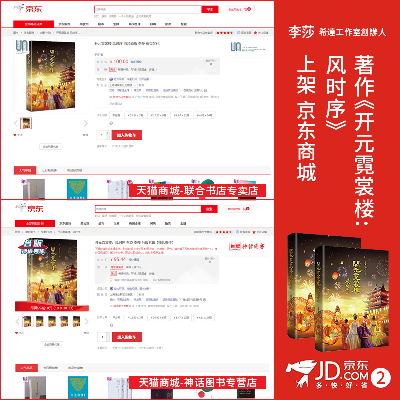 李莎:著作《开元霓裳楼:风时序》上架京东商城——联合书店专卖店和神话图书专营店