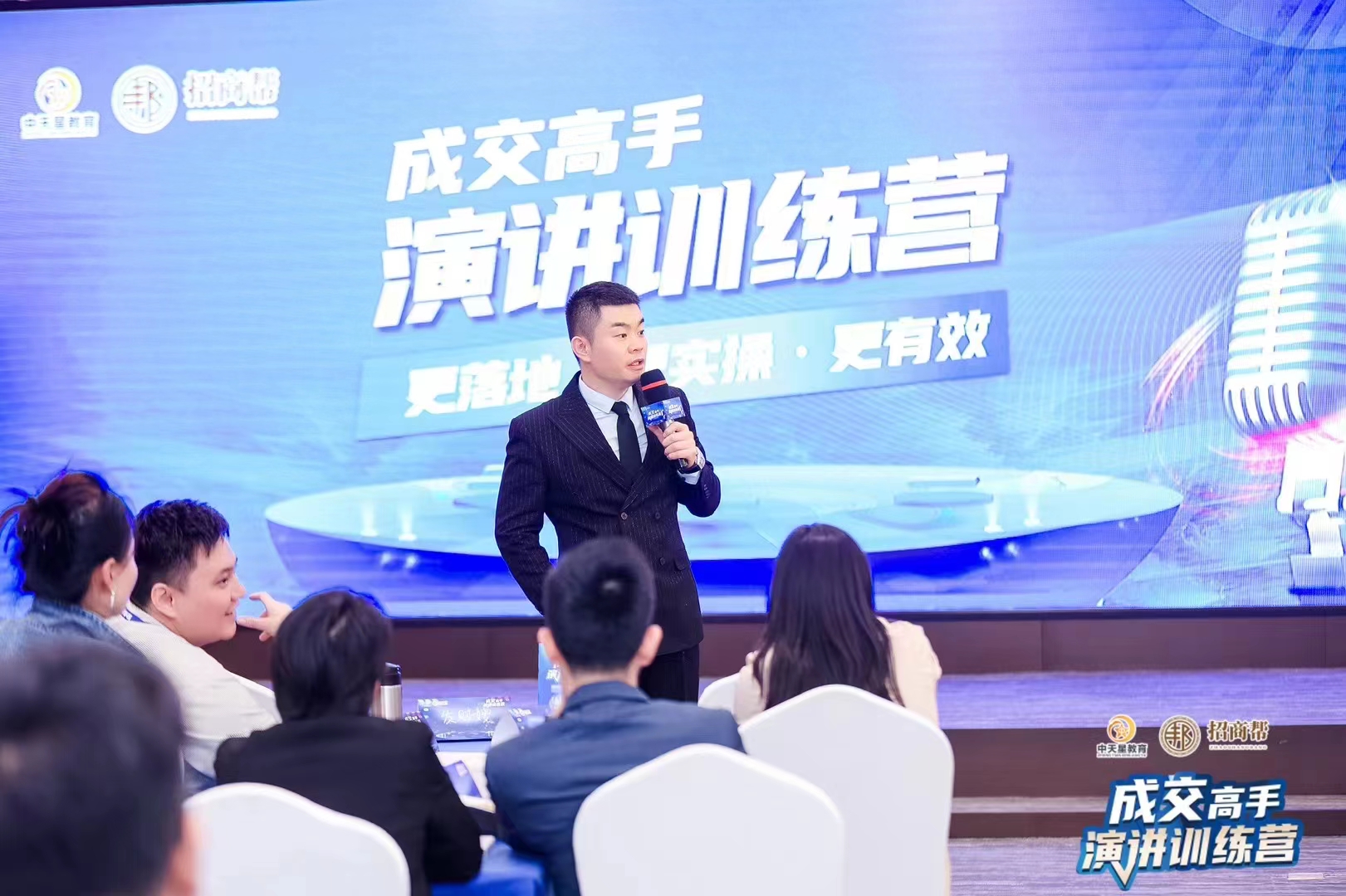 姜立鹏:姜立鹏老师分享着自己的成交方案,学员们听到如获至宝,表示会后会实操学习