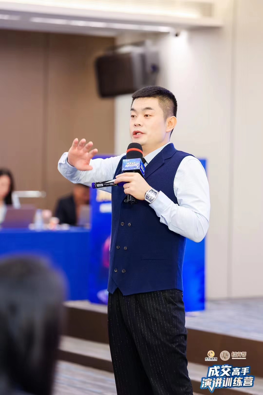 姜立鹏:姜立鹏在台上成竹在胸,侃侃而谈的样子,给在场想提升口才的学员们一个绝佳典范