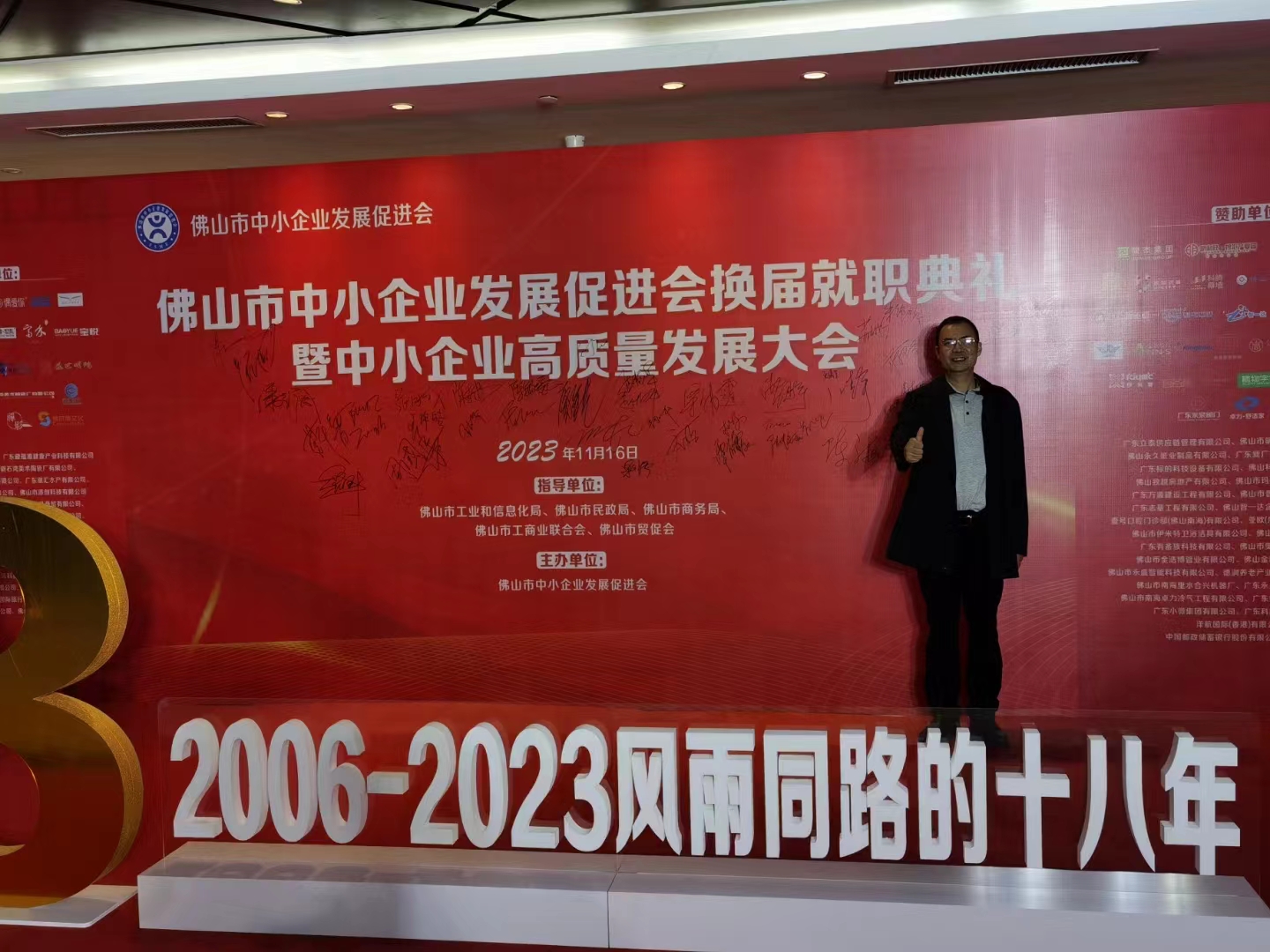 张靖笙:张靖笙老师在签名墙前留影,他表示很高兴能够受邀前来聆听优秀企业故事