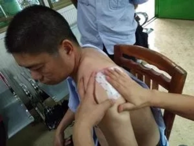 张杰: 患者肩部疼痛现场体验谭一春土家土膏药,并给予反馈贴着很舒服