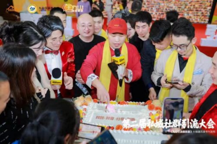 龚文祥:美好时刻大家一同见证,现场推出“九山引流俱乐部大蛋糕”,全场嘉宾祝贺《九山引流俱乐部》大咖通讯录成功发行