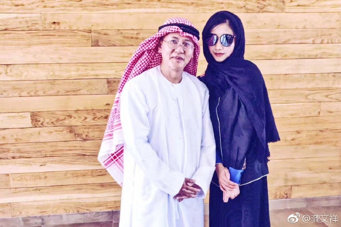 龚文祥:龚文祥老师在迪拜旅游,穿着迪拜的服装与迪拜人合影留念