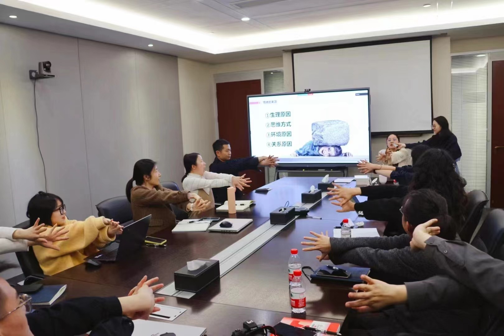 苏星宁:学员们根据苏星宁老师的指导要求,做缓解情绪的肢体动作