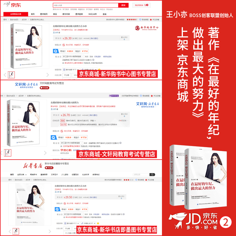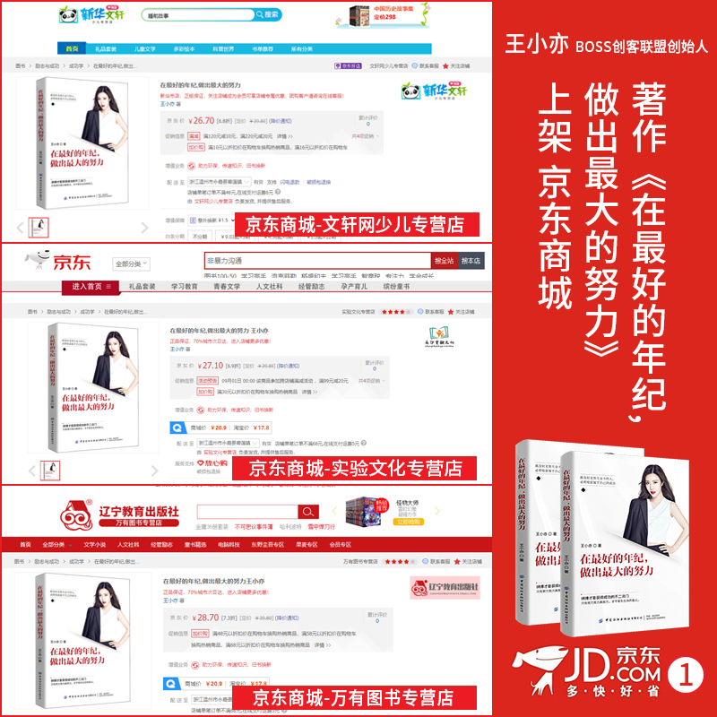 王小亦:著作《在最好的年纪,做出最大的努力》上架京东商城