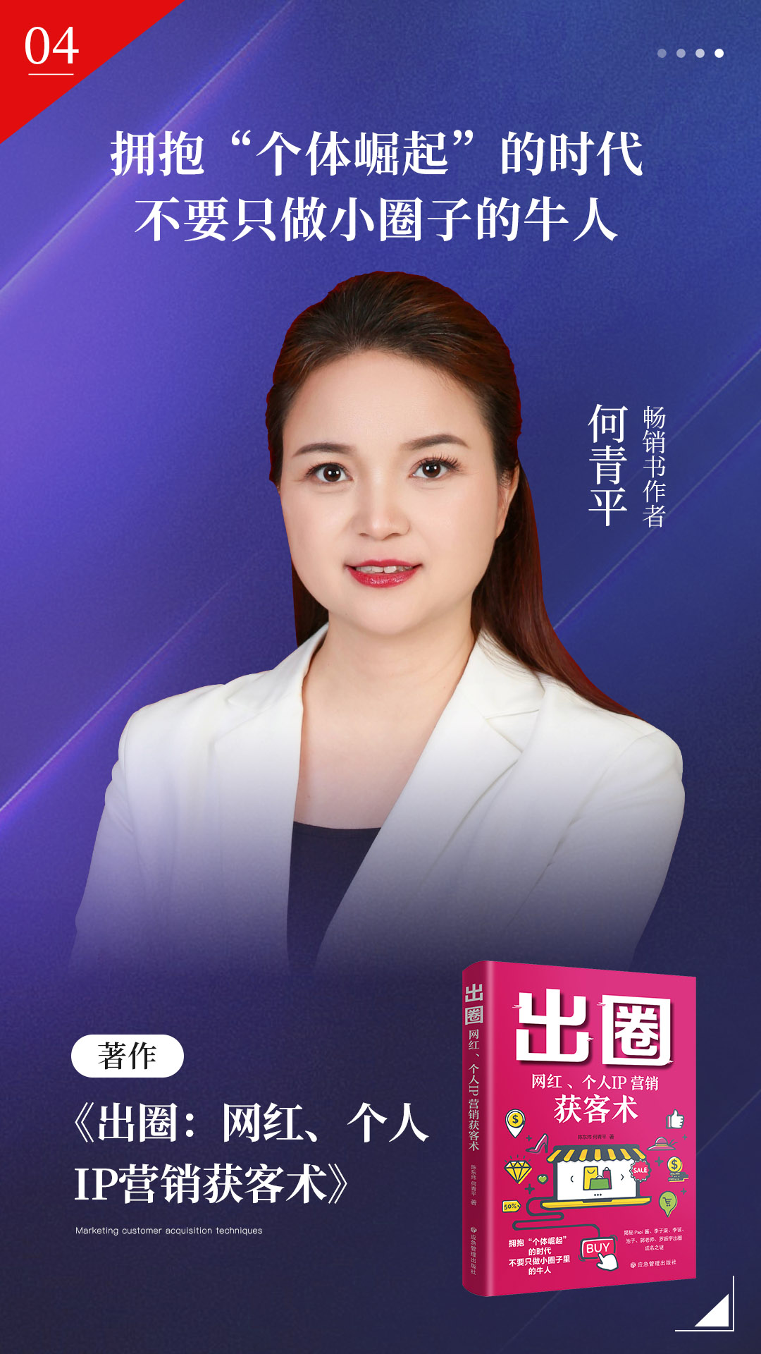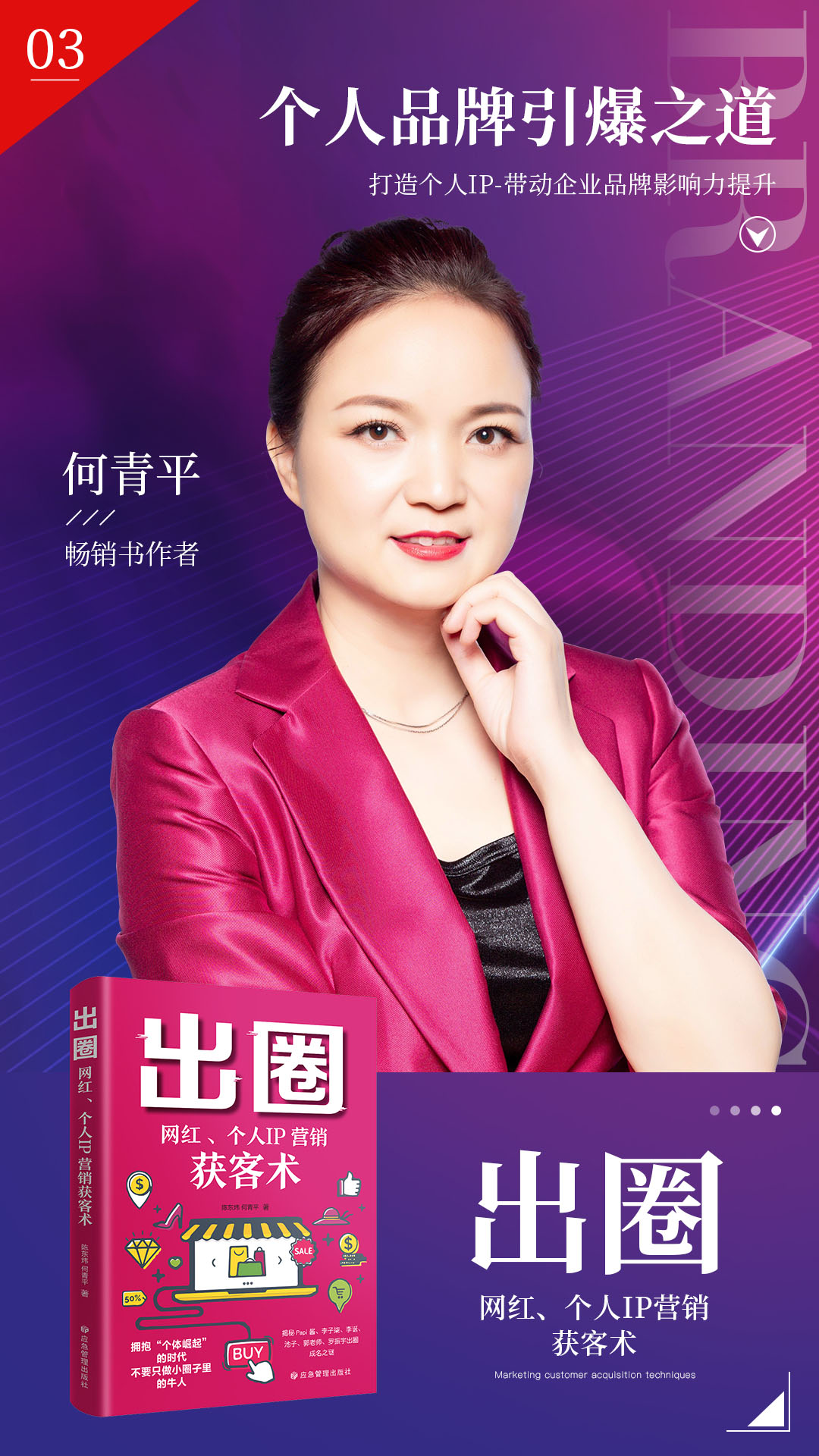 何青平:著作《出圈:网红、个人IP营销获客术》宣传海报