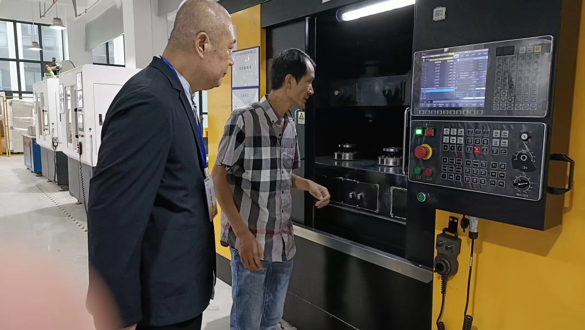 孟昭春:彭永金老师老师给孟昭春老师展示高精密产品生产过程