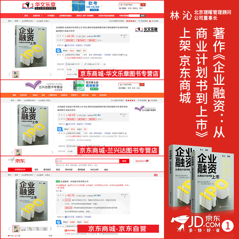 林沁:《企业融资:从商业计划书到上市》一一上架京东各大旗舰店