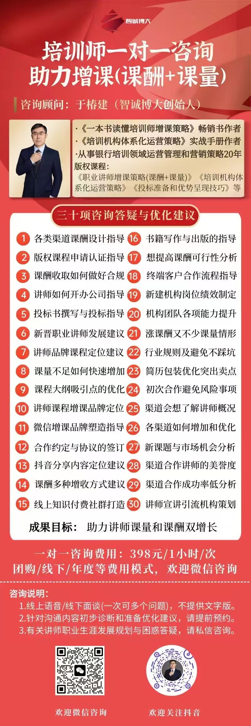 于椿建:培训师一对一咨询助力增课(课酬+课量)