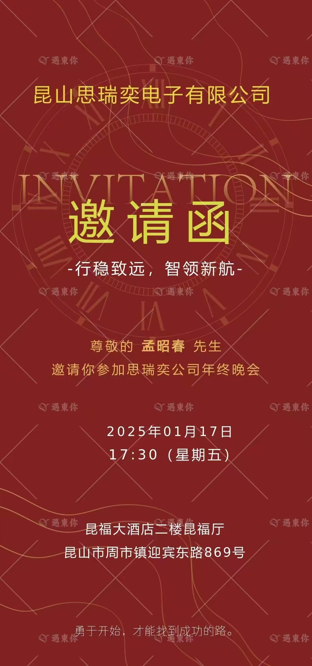 孟昭春:昆山思瑞奕电子有限公司年终晚会邀请函