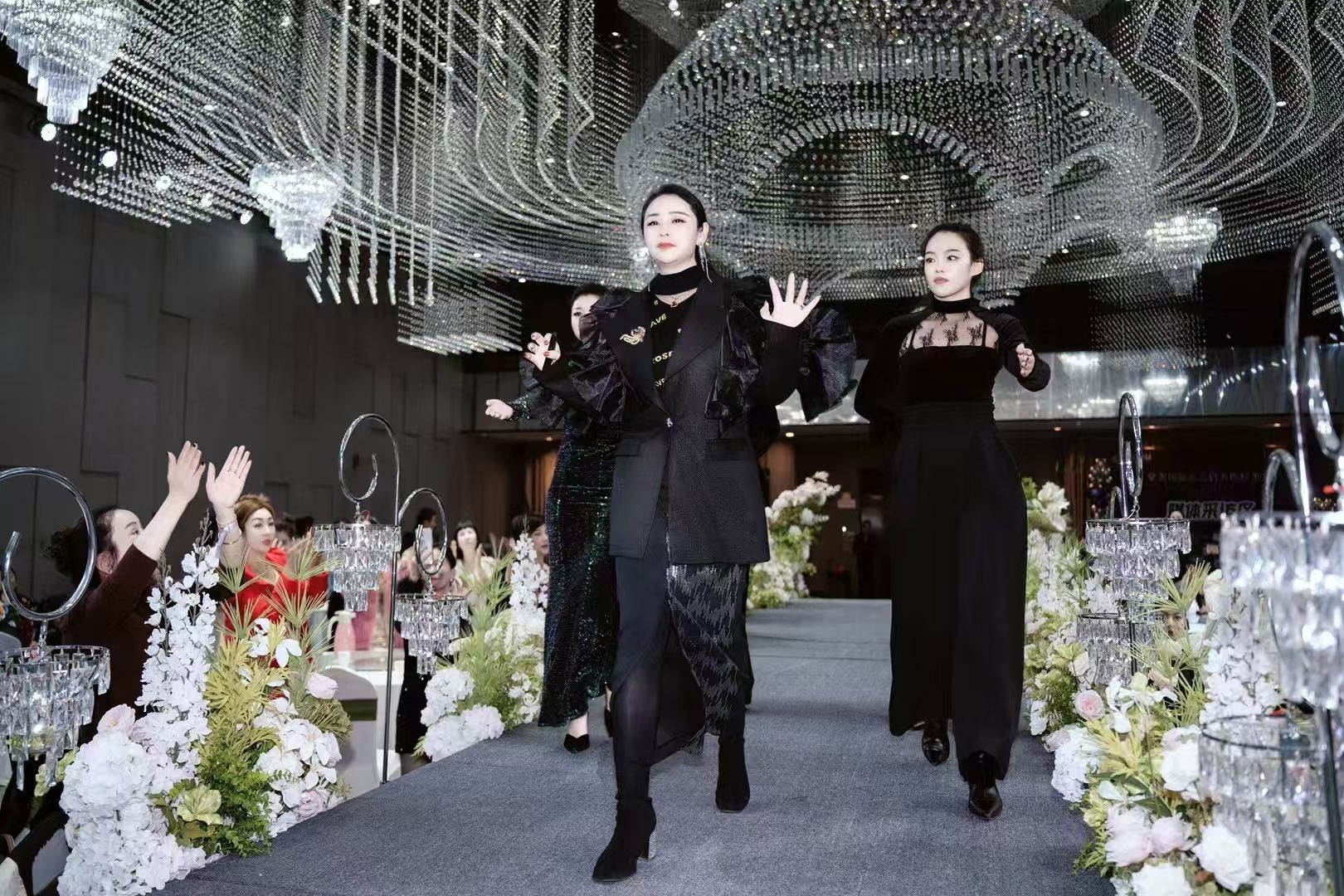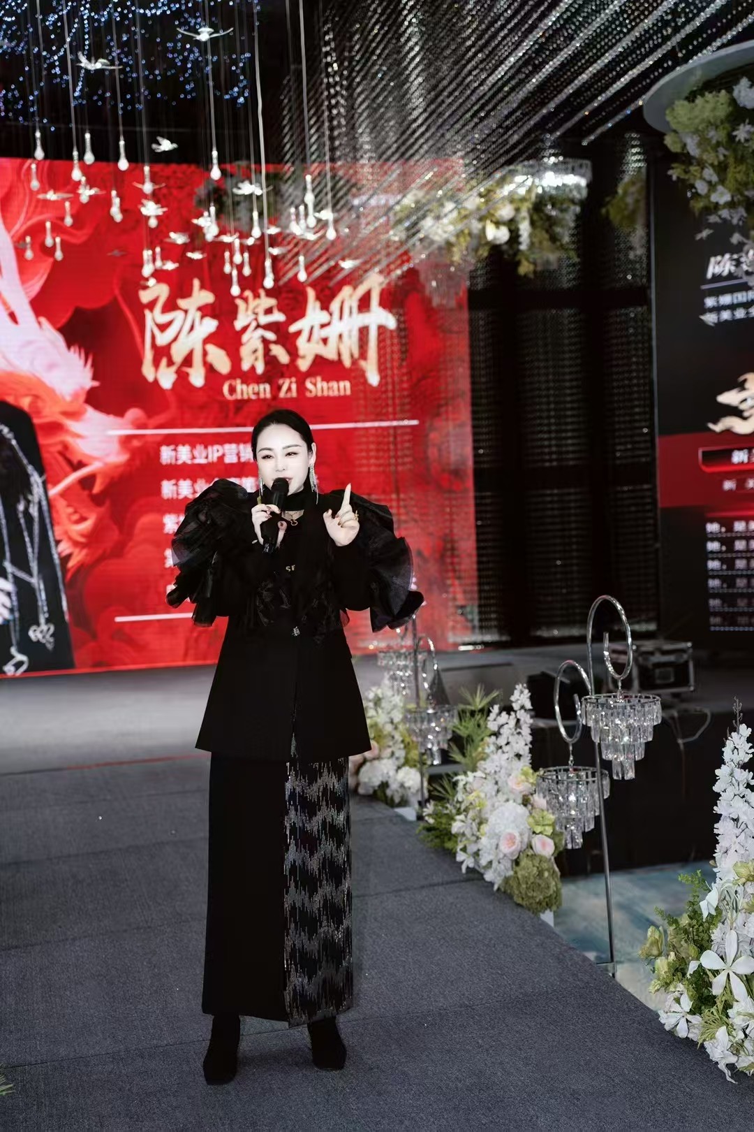 陈紫姗: 身着一袭优雅的套装,迈着自信的步伐走上舞台