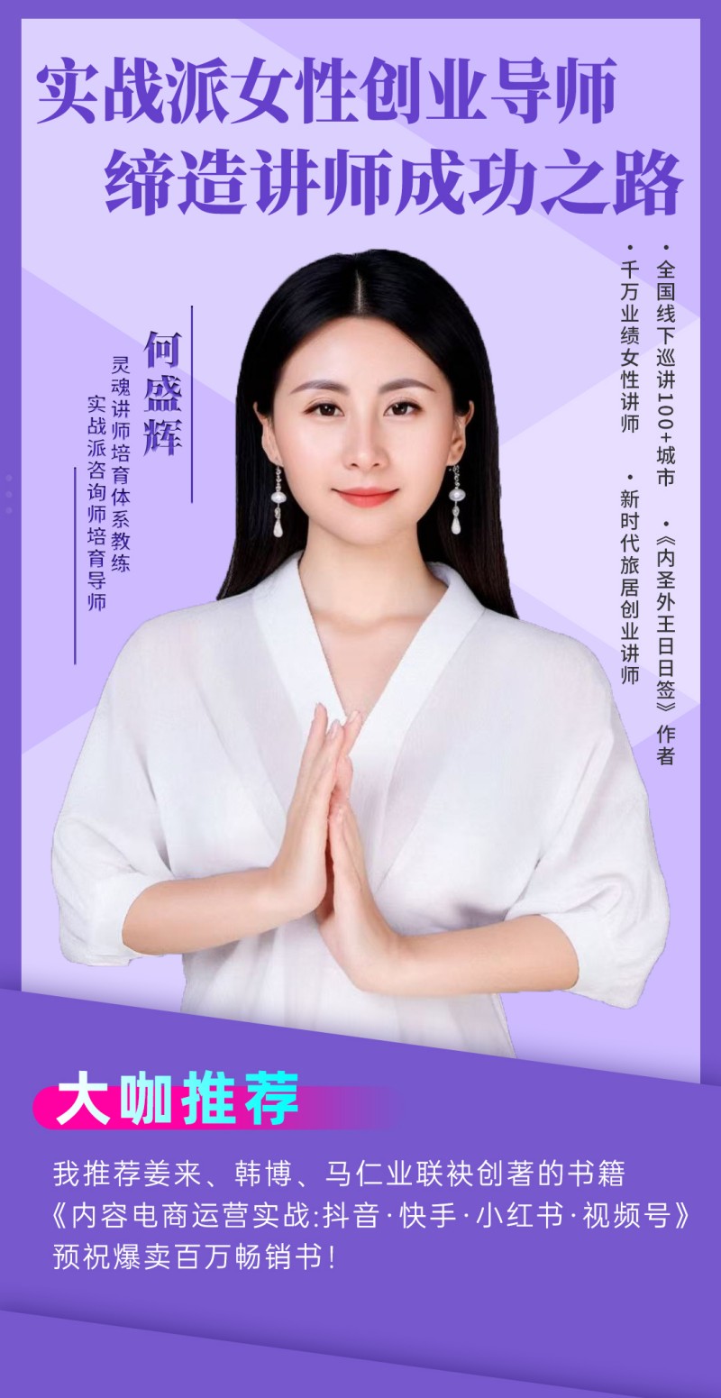 姜来:千万业绩女性讲师“何盛辉”推荐海报