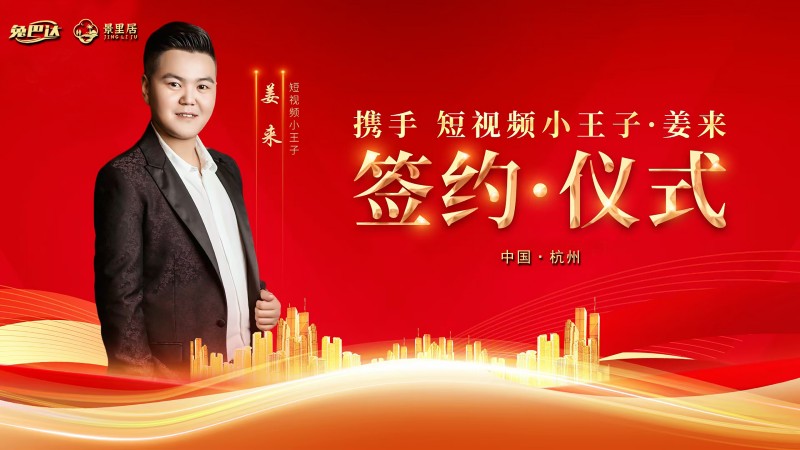 姜来:姜来老师与“兔巴达+景里居”双平台签约仪式海报