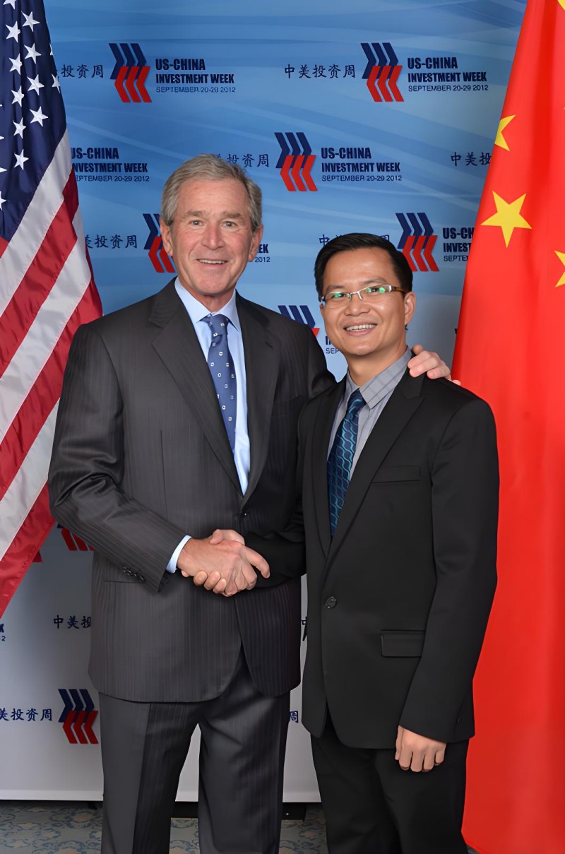 潘伟成:潘伟成老师(右)受到美国前总统小布什亲切接见