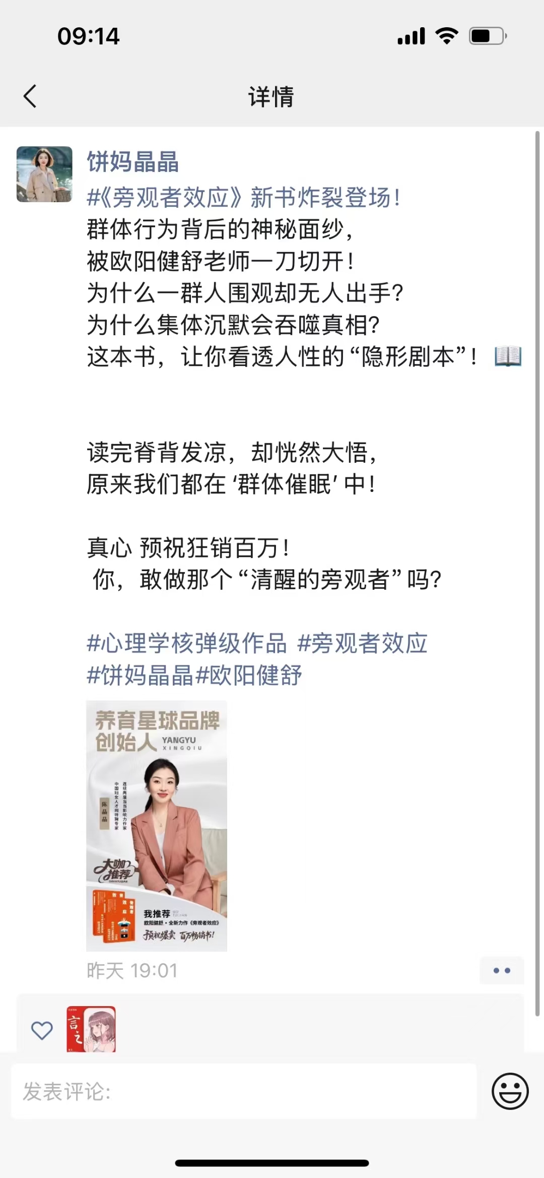 欧阳健舒:新书推荐官:晶晶朋友圈支持