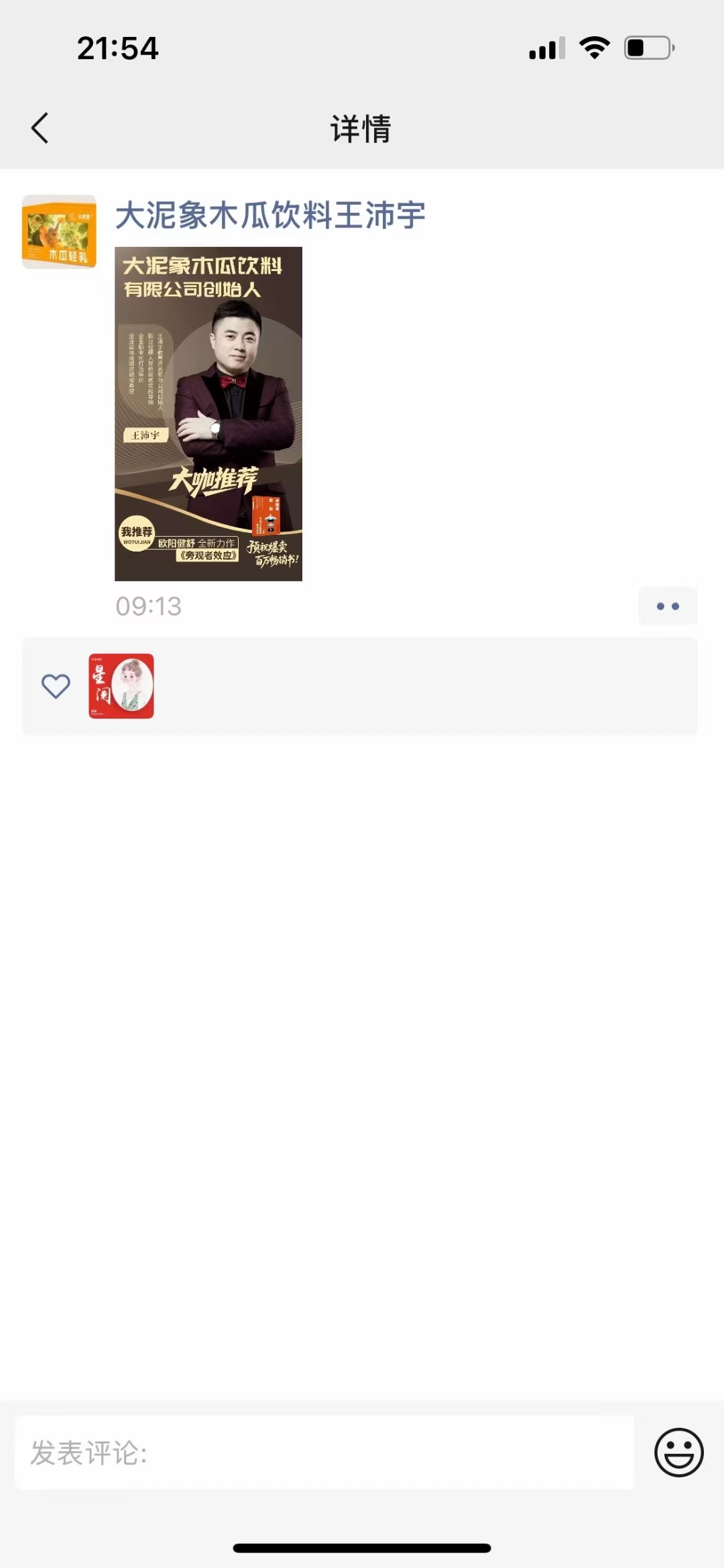 欧阳健舒:新书推荐官:王沛宇朋友圈支持