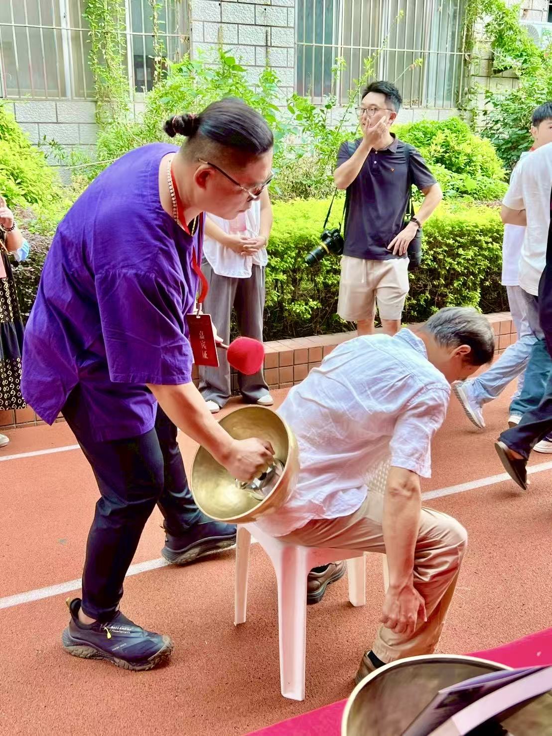 杨裕仲:杨裕仲老师现场给同胞体验“声灸疗愈法”