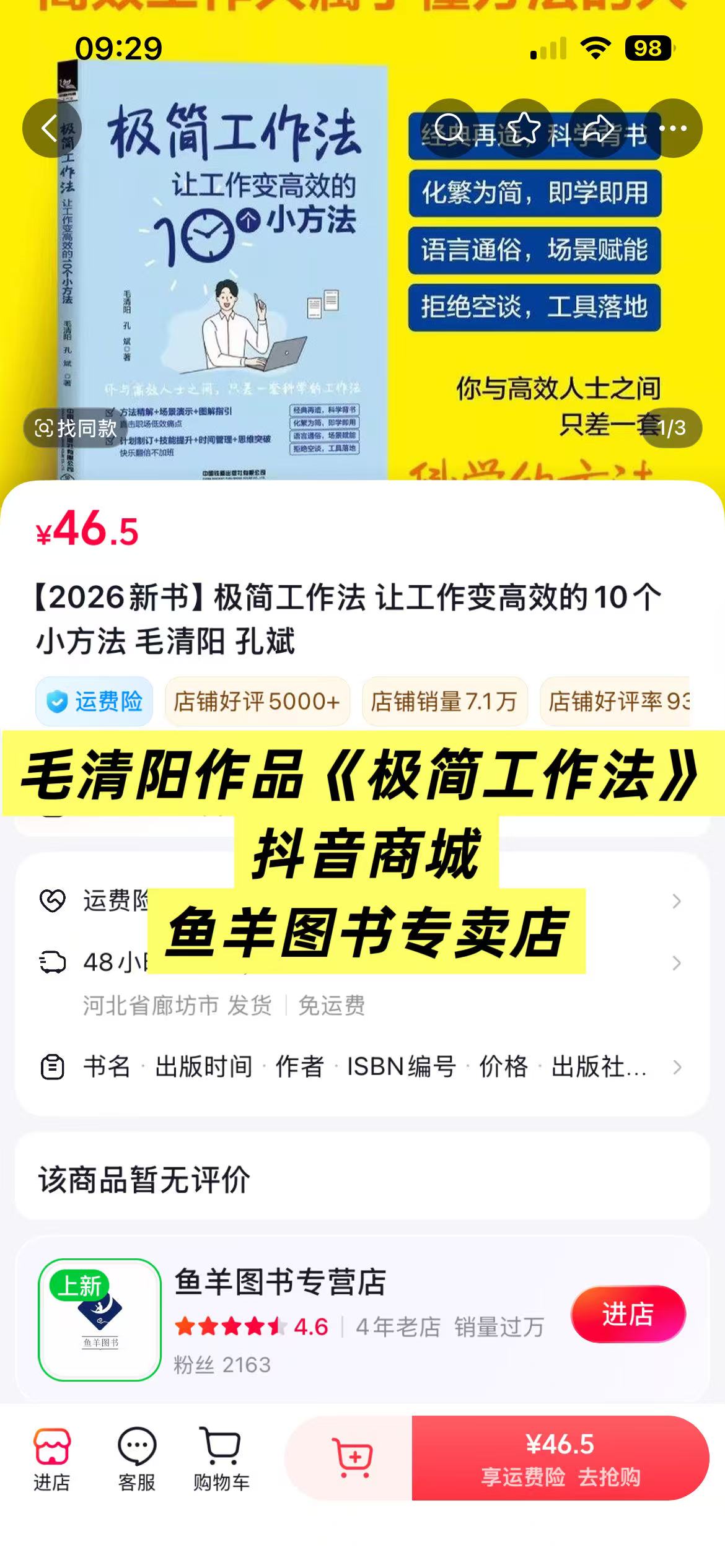 毛清阳:毛清阳作品《极简工作法》全线上架抖音商城