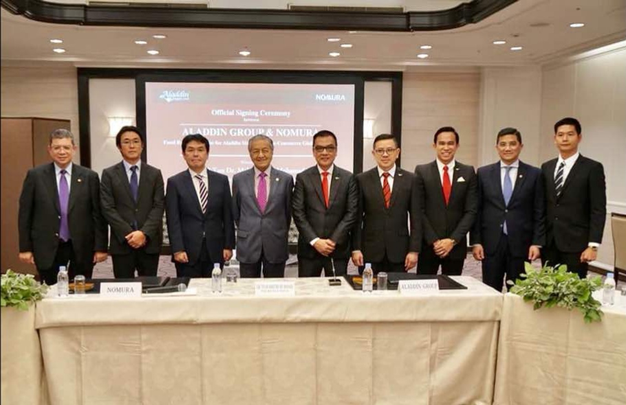 杨杨:马来西亚阿拉丁集团(Aladdin Group)与日本野村证券(Nomura)官方签约仪式(Official Signing Ceremony)的正式合影:(左数第4位 马哈蒂尔·穆罕默德)(右一杨玺民)