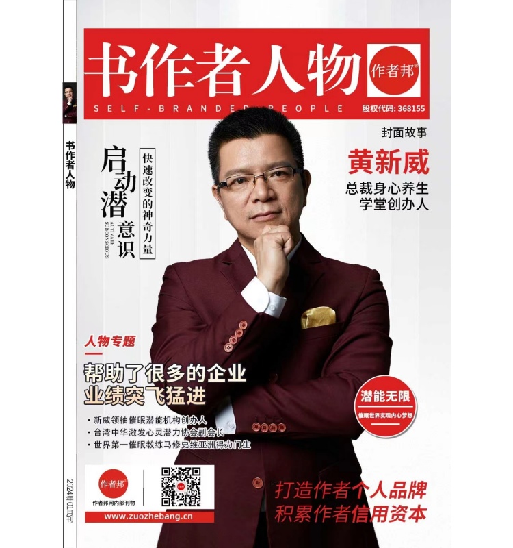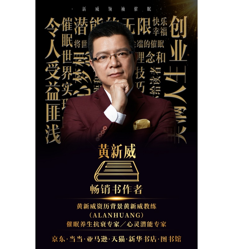 “催眠自己幸福无比”书作者黄新威:健康能量与自我赋能的融合者!相关平台为资深创始人黄新威定制专属推介素材,素材浓缩黄新威的多元经历,打造立体化专业信任凭证,助其行业知名度提升。
