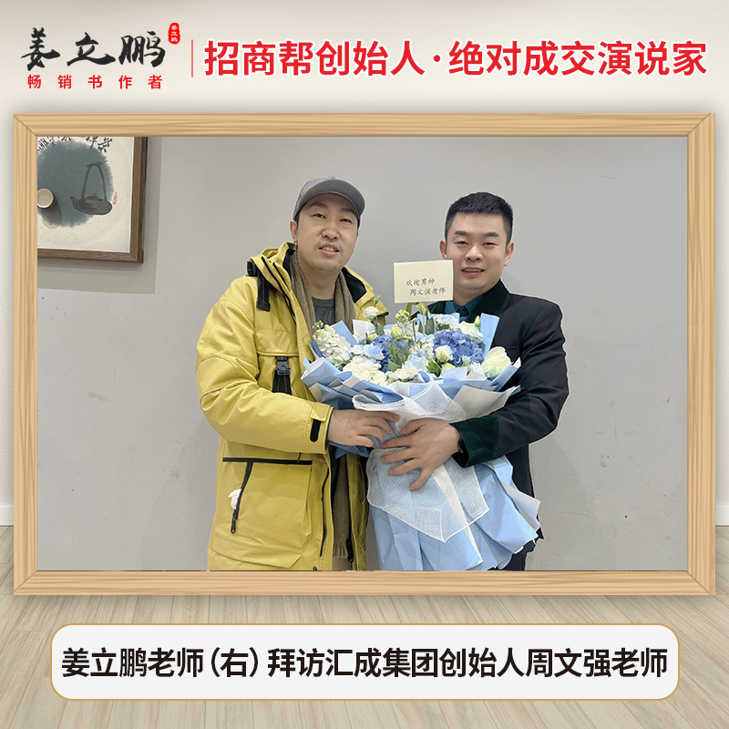 姜立鹏老师定制花束,登门拜访汇成集团创始人周文强老师,两人相识多年,共同为企业、为品牌、为创业者们辅导教育、培训,一直以实际行动践行利他主义。