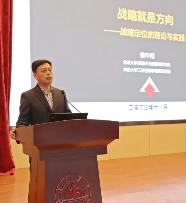 裴中阳老师以“战略就是方向:战略定位的理论与实践”为题,从战略的内涵、价值及如何制定发展战略三个方面展开报告,指出战略事关方向,并运用战略定位“三维坐标”模式。