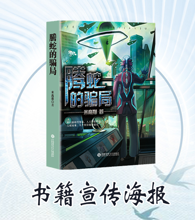 宁夏西部影视城董事长,米高猫老师的著作——《腾蛇的骗局》中国大陆版,书籍实拍宣传海报,最强人工智能的战争,且看不一样的科幻之旅,探讨科幻未来的伦理和价值。