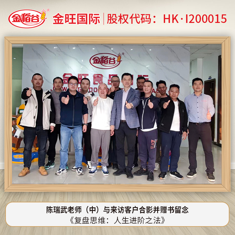 金旺食品国际有限公司董事长陈瑞武先生——给来访业务合作客户赠送自己的著作《复盘思维:人生进阶之法》,友好交流,商业洽谈,并合影留念,提高了个人及其著作的影响力。
