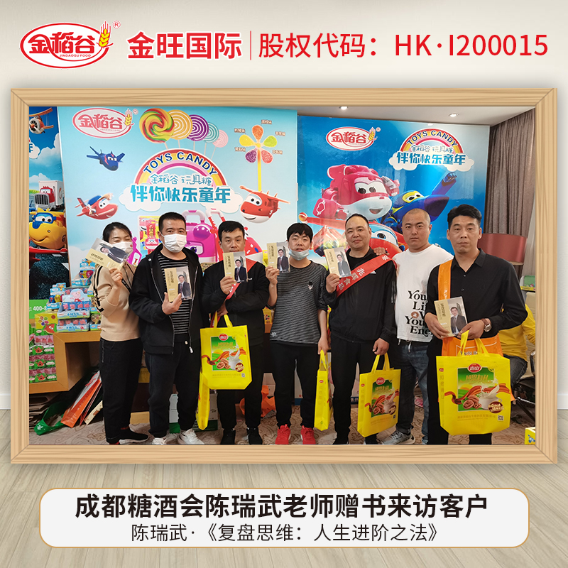 金稻谷品牌金旺国际集团营销人员,金稻品牌华中大区总监:熊显州,赠予客户陈瑞武老师书籍,与客户交流并宣传企业文化,为扩大金稻谷品牌知名度,扩大企业市场。