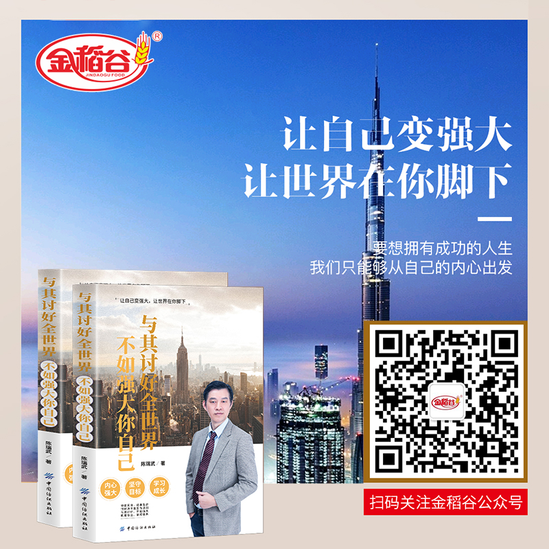 金稻谷金旺国际集团,陈瑞武老师著作:《与其讨好全世界不如强大你自己》,书籍实拍宣传图,坚守目标,学习成长,改变自己,让自己变强大,让世界在你脚下,注重细节的人,成功会来敲门
