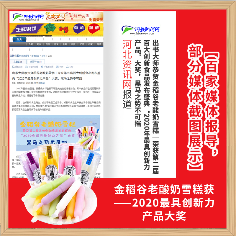 金旺食品有限公司,在疫情期间成为食品行业的一匹黑马,脱颖而出,旗下金稻谷品牌研发的金稻谷老酸奶雪糕,荣获第二届百大创新食品发布盛典——2020年最具创新力产品