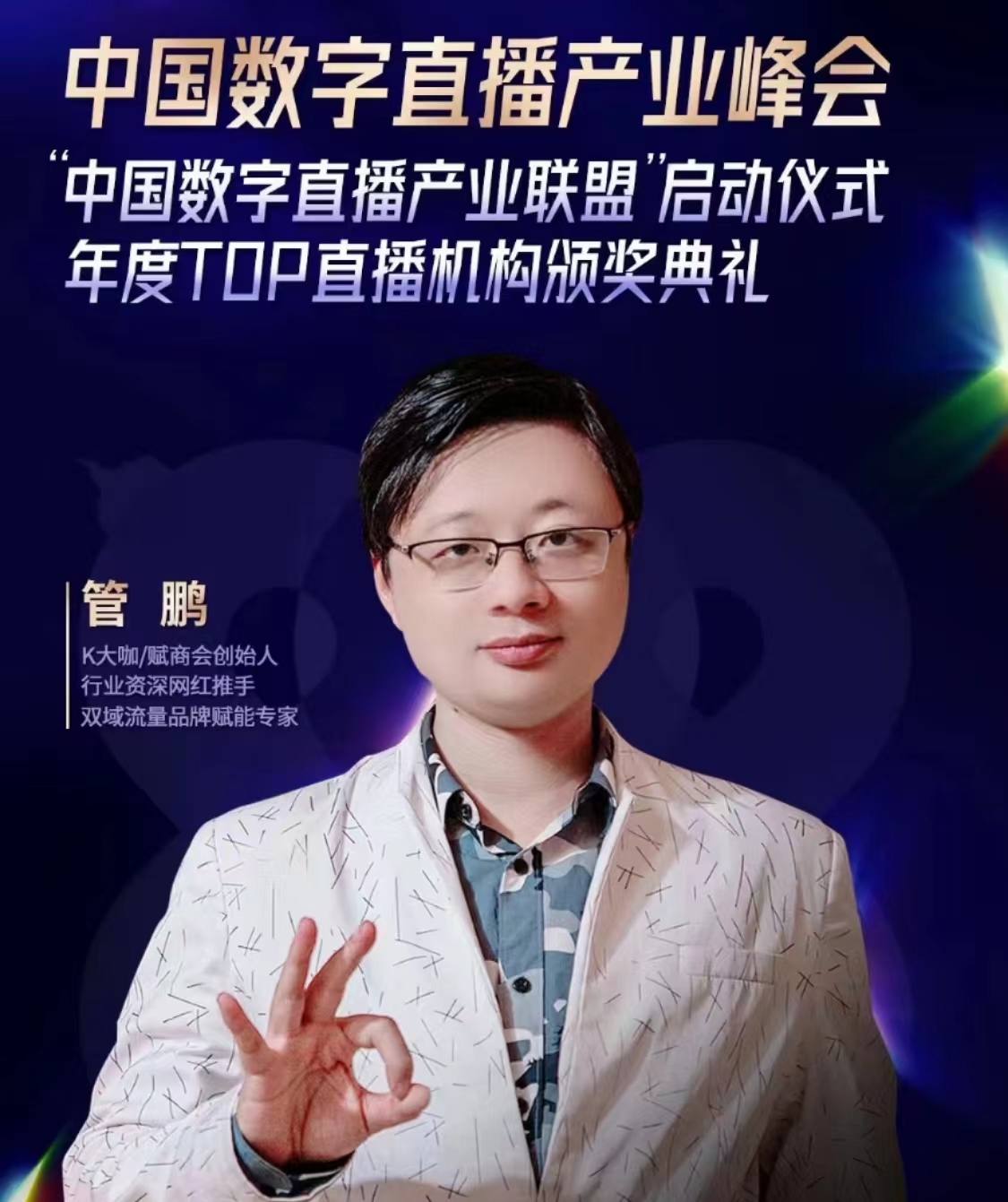 K大咖创始人管鹏老师——受邀参与中国数字直播产业联盟启动仪式,中国数字直播产业峰会&Top直播机构颁奖典礼,各行业大咖云集,与3.28杭州国际博览中心举行。