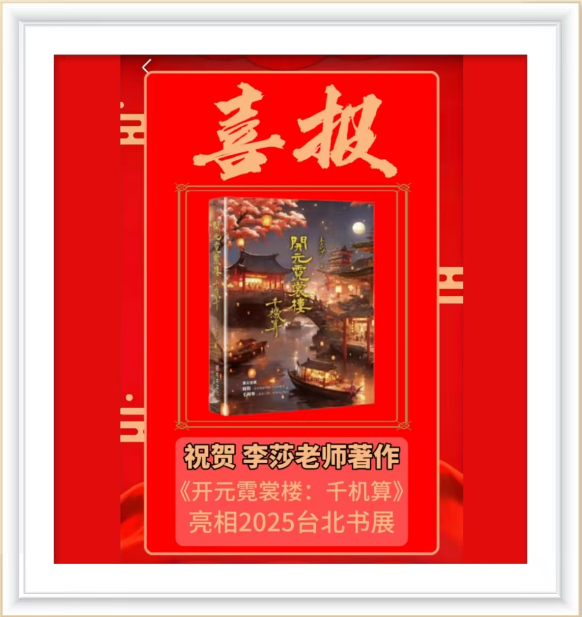 2025年台北书展在众人的期待中盛大开幕,吸引了无数读者与创作者的目光。在众多参展作品中,李莎老师的著作《开元霓裳楼:千机算》脱颖而出,成为书展上的一抹亮色。