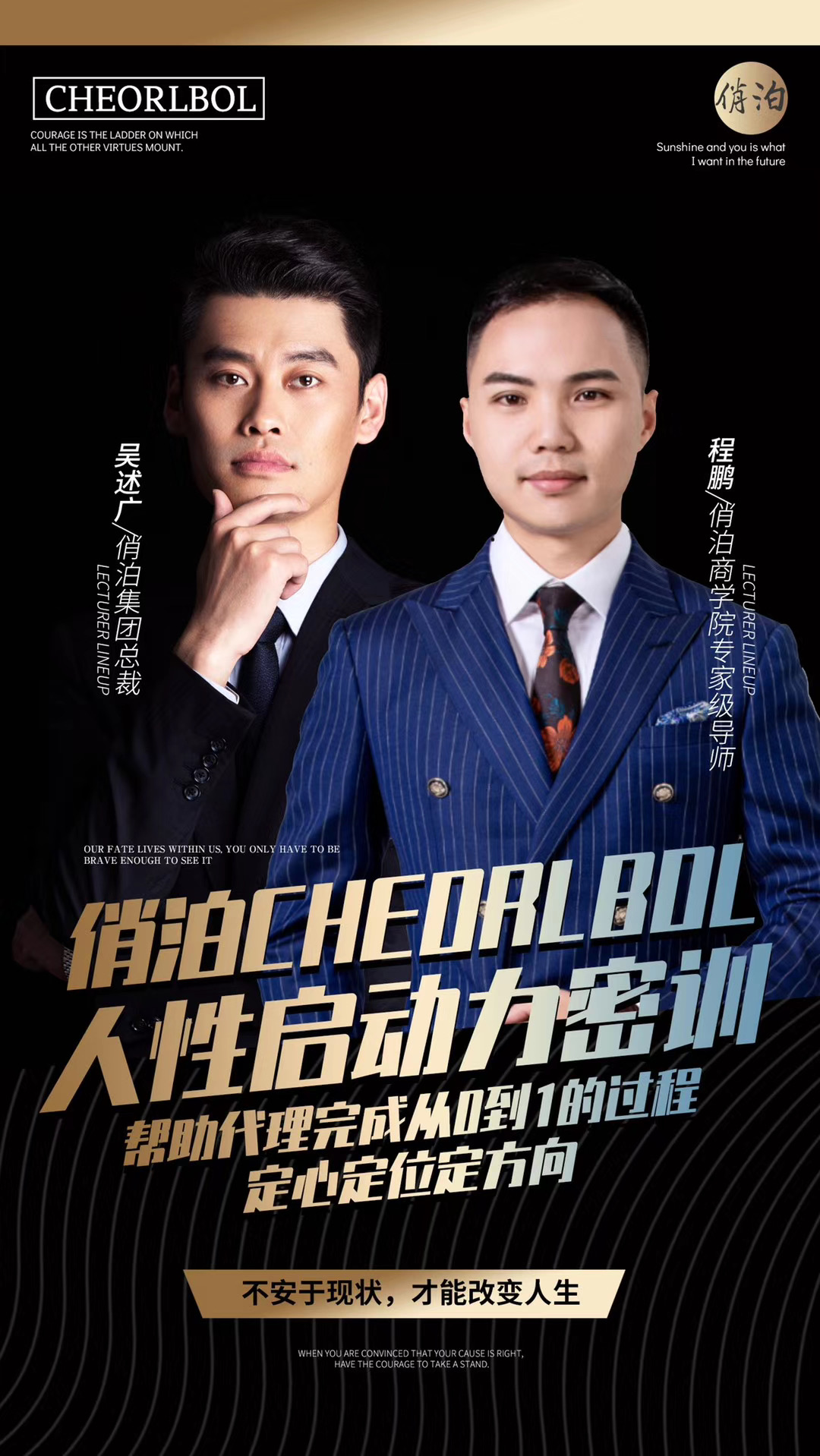 中国人性营销第一人:程鹏,为俏伯CHEORLBOL品牌针对每一方面的问题定制专属于俏伯CHEORLBOL品牌的课程,不安于现状,才能改变人生!帮助代理定心,定位,定方向。