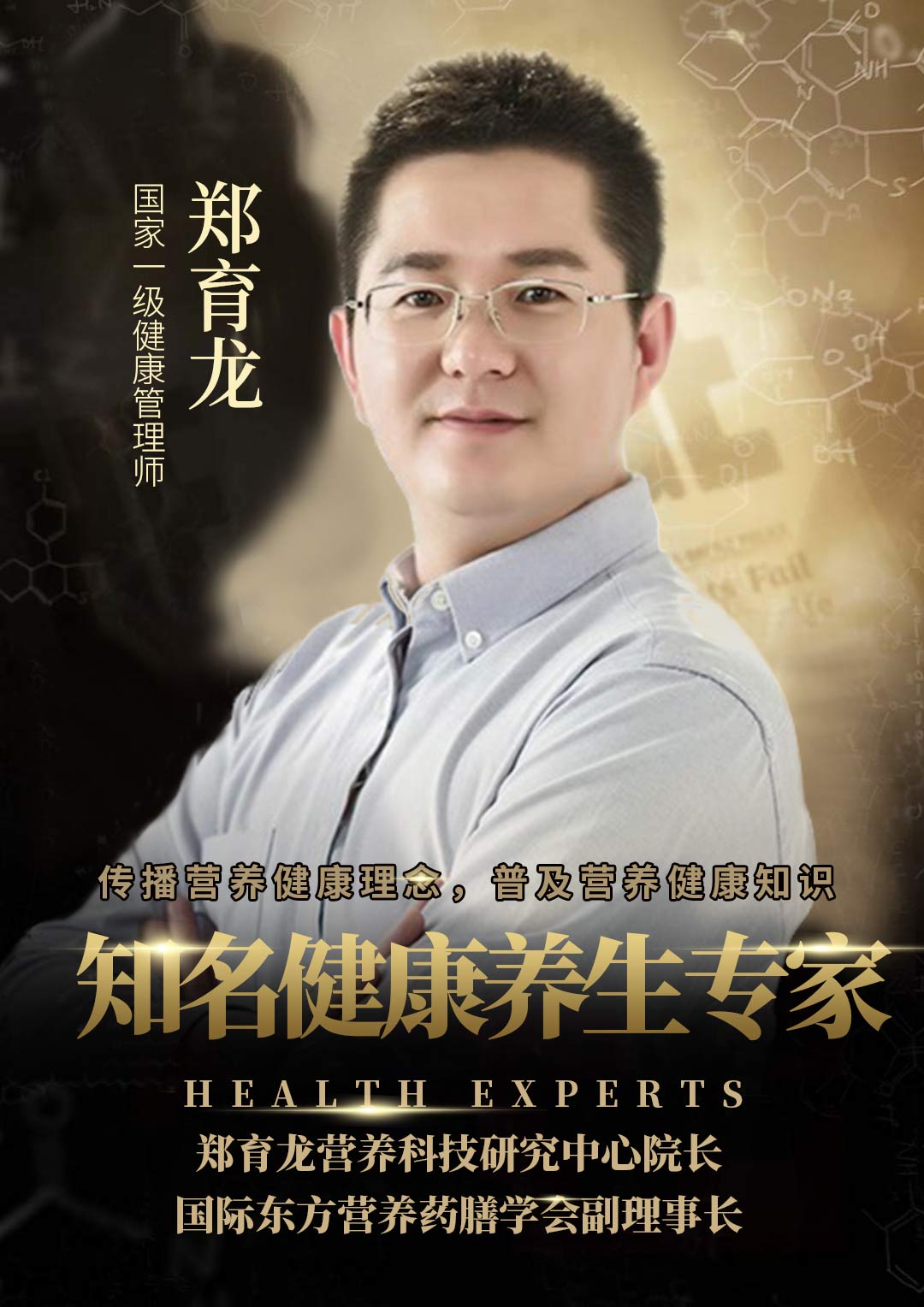 知名健康养生专家、国家注册营养师、郑育龙营养科技研究中心院长、国际东方营养药膳学会副理事长、中国医药健康协会理事、中国管理科学研究院委员、