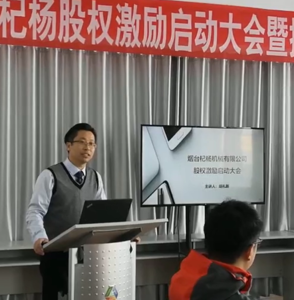 胡礼新老师作为主讲人受邀参加——烟台杞杨股权激励启动大会暨授权仪式,胡礼新老师作为专业的股权守护者,过硬的专业经验与实践成果为此次大会增添了新的助力。