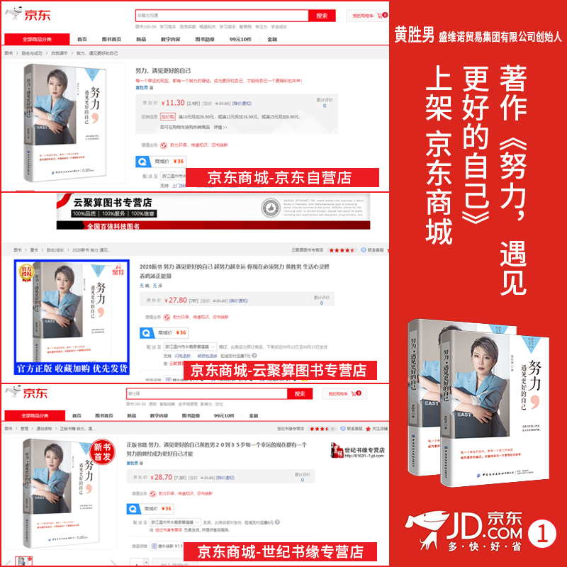 畅销书作者黄胜男老师出版作品:《努力,遇见更好的自己》——上架京东平台各大旗舰店销售,销售数据与评价异常优秀,读者纷纷购买阅读,并留言这是一本优秀的作品。