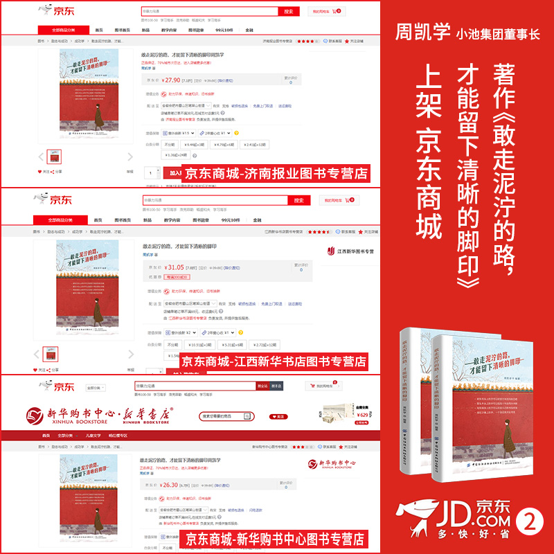 小池集团董事长周凯学老师的出版著作——《敢走泥泞的路,才能留下清晰的脚印》火爆上架京东商城,书籍售前就收到众多读者和书友的热切关注,一经上架立即火爆热销。