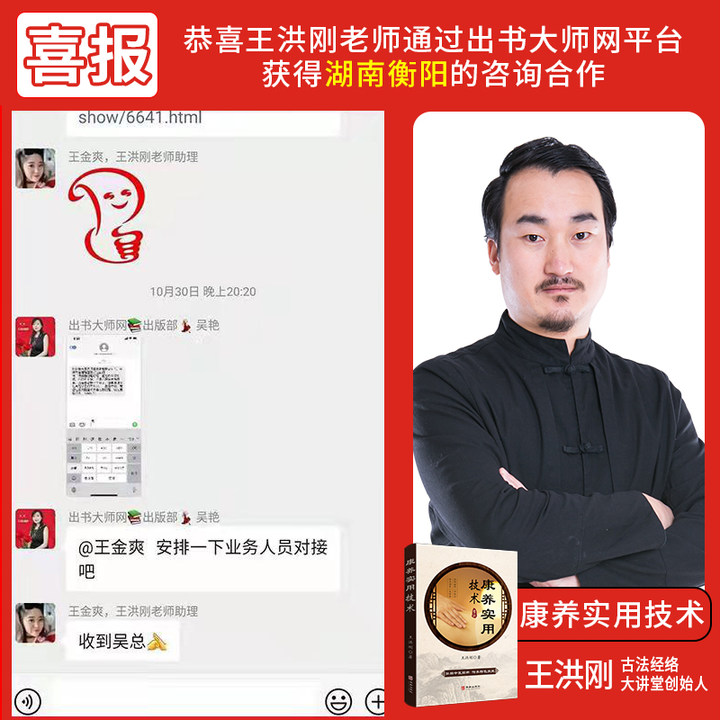 畅销书作者王洪刚老师,通过作者邦网站,获得景德镇徐先生咨询治疗的信息,体现出王洪刚老师个人以及品牌产品的民众信赖度,同时也展现了作者邦网站对书作者用心到位的营销推广。
