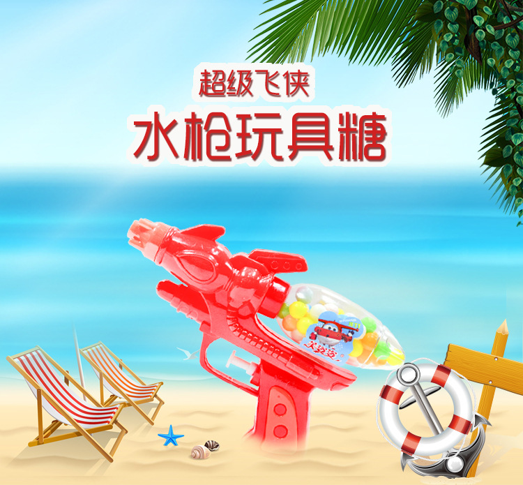 超距离发射水力十足,超级飞侠造型,自带糖果,环保材质,我的夏日秘密武器,补充弹药,更迅速,约好打水仗的小伙伴们,一起去打水仗吧。水枪玩具糖,童年好玩伴。