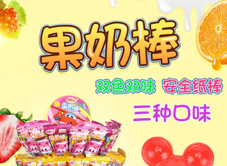 金稻谷果奶棒,双色双味,安全纸棒,三种口味,米奇造型,超级飞侠正版IP授权,缤纷果味,趣乐无穷,15年传统工艺,专注儿童糖果,奶香浓郁,一只在手,快乐我有。