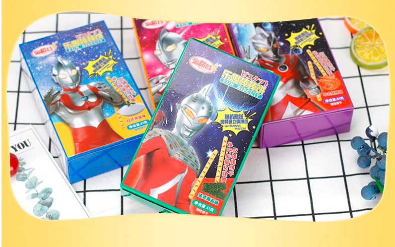 乐趣棒棒饼,五种口味,12款奥特曼,立体拼图,多种口味,满足大小朋友的口味,日式海盐味,意式番茄味,法式海苔味,奥尔良烤翅味,中式烧烤味,味美颜值还高,脆翻众人心。